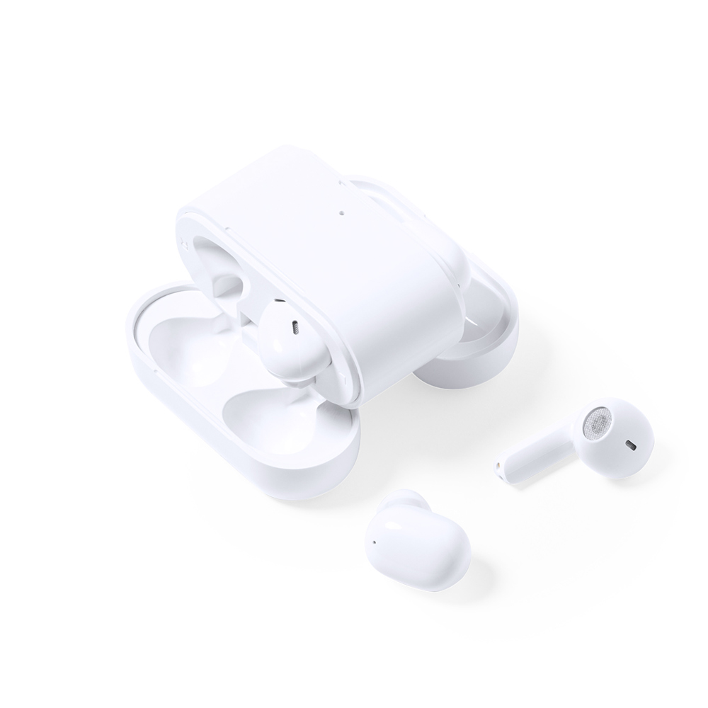 Etui met 2 sets oortelefoons in elegante witte afwerking en in 2 verschillende ergonomische designs. Bluetooth® 5.0-verbinding, met touch control-knop geïntegreerd in de headset, bijpassende oplaadbasis en oplaadstatusindicatoren. Handsfree-functie en oplaadbaar via USB. Gepresenteerd in een aantrekkelijke ontwerpdoos.