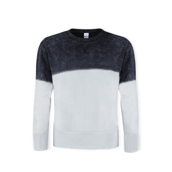 Tweekleurig unisex sweatshirt met gewassen en geverfd effect op het kledingstuk, waardoor elk stuk uniek en onherhaalbaar is. Gemaakt van 100% ringgesponnen gekamd katoen 280g/m2. Zachte aanraking en moderne snit. Manchet en zoom met extra brede elastische banden voor een perfecte pasvorm. Smalle ronde hals in 2x2 rib. Dubbele stiksels voor duurzaamheid en weerstand tegen intensieve slijtage. Eenvoudig verwijderbaar label en verkrijgbaar in de maten XS, S, M, L, XL en XXL.