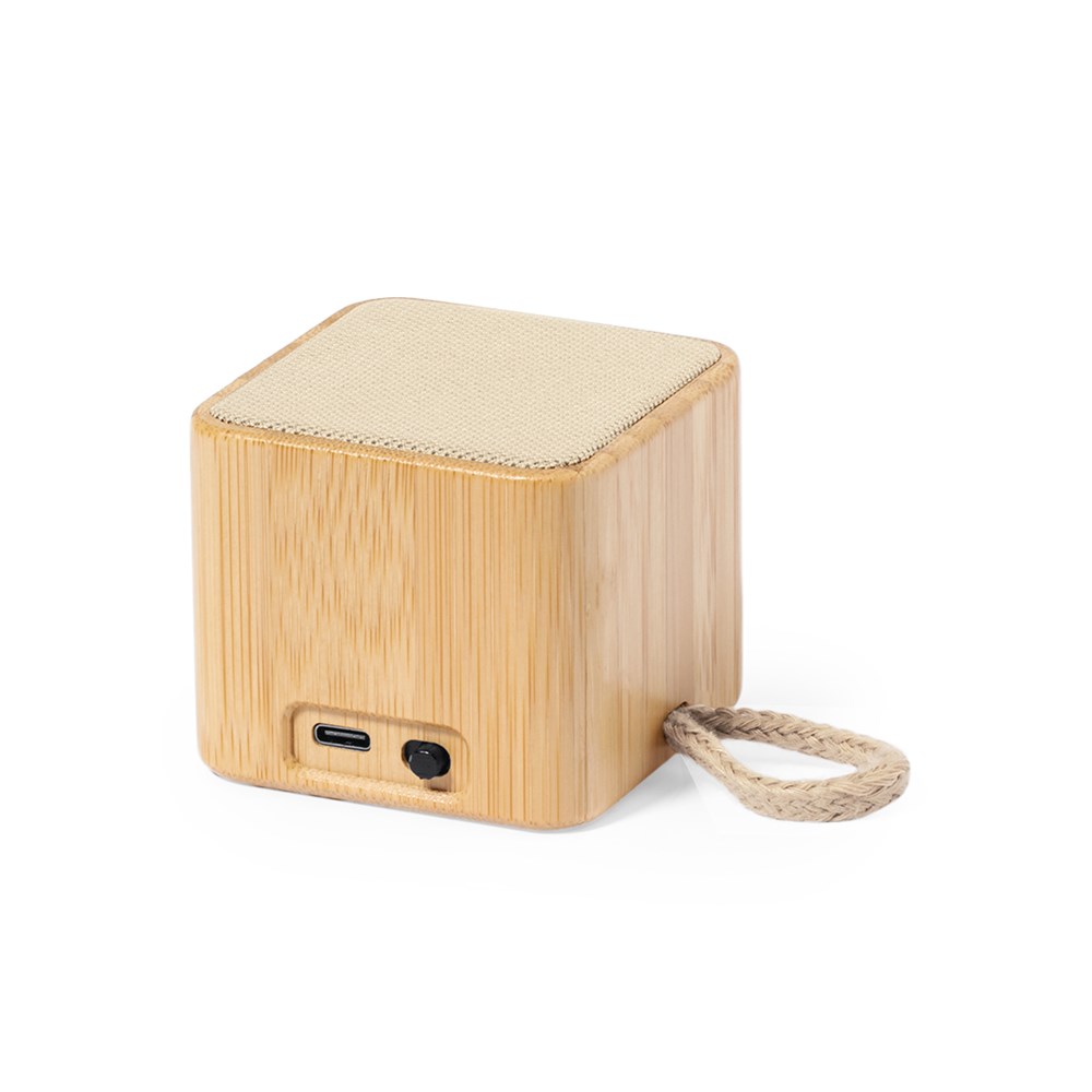 Draadloze speaker met Bluetooth® verbinding en 3W vermogen. Met natuurlijke bamboe behuizing in combinatie met katoenen bekleding. Compact van formaat en met handige katoenen draagbeugel. 300mAh lithium batterij, Type C oplaadkabel inbegrepen. Geleverd in een individuele kraft design box. Instructie handleiding beschikbaar in het Engels en Spaans.Materialen zoals bamboe bevorderen het gebruik van natuurlijke grondstoffen en verminderen de uitstoot van verontreinigende stoffen. Bovendien is bamboe afkomstig van een zeer resistente en veelzijdige plant, met snelle groei en regeneratie, wat een uitstekend alternatief is voor het gebruik van traditioneel hout.