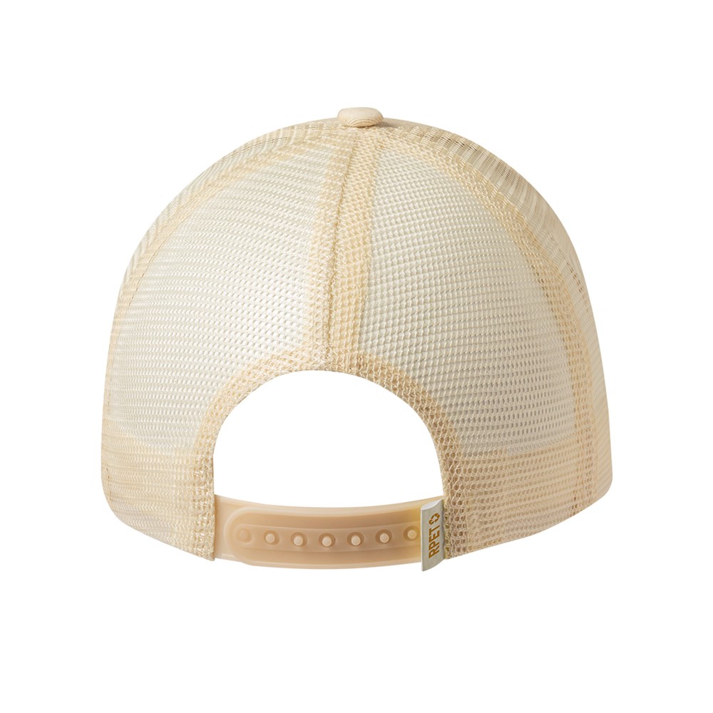 Truckerpet met 5 panelen gemaakt van duurzaam RPET-polyester. Met gestikt voorpaneel en mesh achterpand, met bijpassende en verstelbare kunststof sluiting in naturel kleur en RPET-label. RPET-materiaal is gemaakt van gerecycled plastic, waardoor het hergebruik van plastic afval wordt bevorderd en de duurzaamheid van de planeet wordt bevorderd.