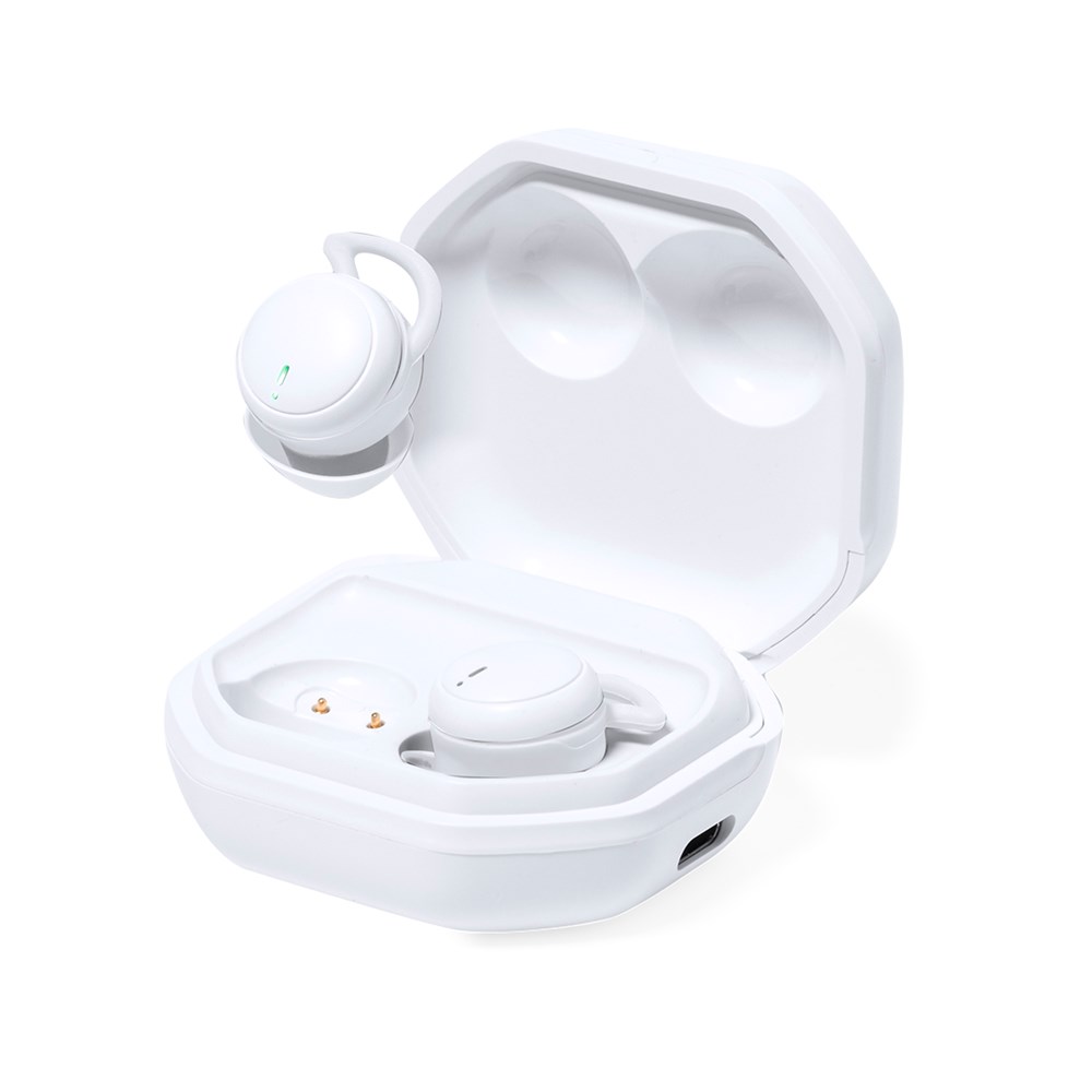 Oortelefoon in elegante witte afwerking met Bluetooth® 5.0-verbinding. Ergonomisch en compact ontwerp, waardoor het oor kan worden rusten of bedekt zonder ongemak te veroorzaken. Inclusief aanraakbedieningsknop geïntegreerd in het oorstuk, met bijpassend oplaadstation. Handsfree en oplaadbaar, met Type Inclusief C-kabel. Individueel verpakt in een luxe koffer met scharnierend deksel en 250mAh-oplaadbasis. Gepresenteerd in een aantrekkelijke kraft-designdoos, met handleiding in het Engels en Spaans.
