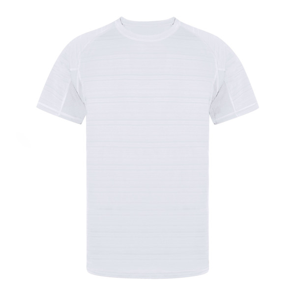 Unisex technisch T-shirt met origineel gestreept design, in combinatie met ademende micro-geperforeerde stof in oksels en zijkanten. Gemaakt van zacht 100% polyester 135g/m2 materiaal, een zeer comfortabel, licht en ademend T-shirt, ideaal voor sport en ook voor dagelijks gebruik. Moderne snit, raglanmouwen en ronde hals, met dubbel gestikte zoom en dubbele stoffen mouwen voor grotere duurzaamheid en weerstand tegen intensief gebruik. Verkrijgbaar in de maten XS, S, M, L, XL en XXL.