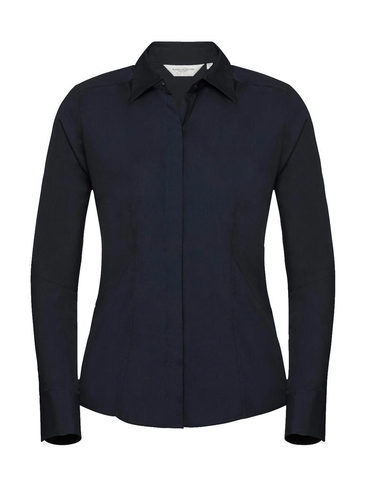 ·110-115 g/m² (White: 100 g/m²) ·65% polyester, 35% katoen popeline ·lange mouwen ·verborgen...meer
