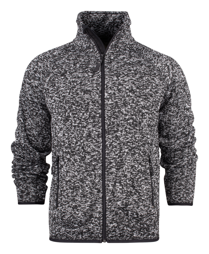 Zwaar gebreide fleecejas met mêlée effect. De binnenzijde is geborsteld. Contrasterende ritssluitingen en flatlock naden. Voorzakken met ritssluiting en elastische zoom aan de manchetten en onderaan de zoom.