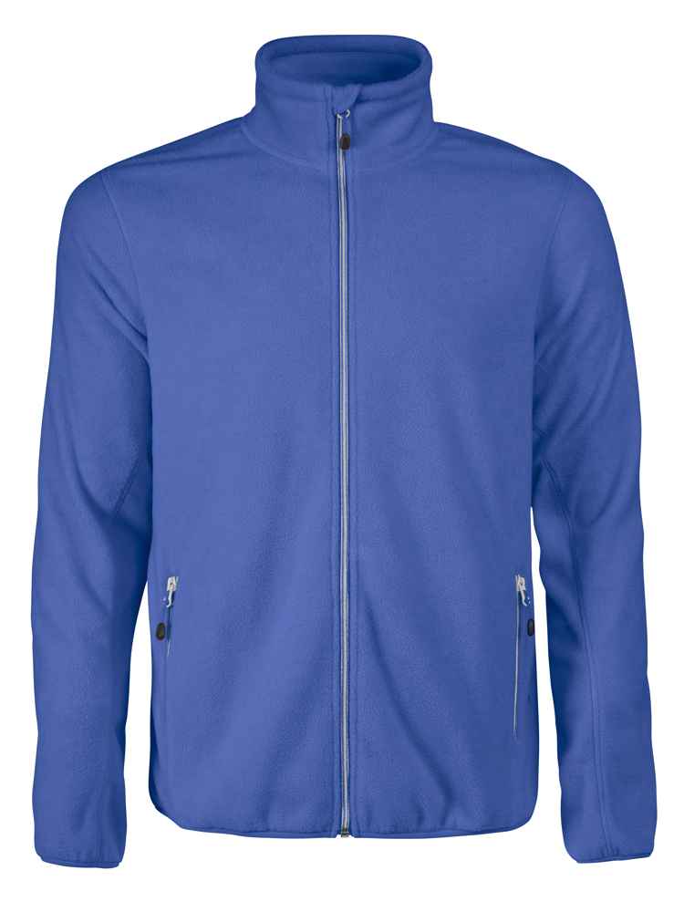 Geborstelde fleecejas met lange ritssluiting voor dames en heren. Geborsteld aan beide zijden. Twee voorzakken, contrasterende ritssluitingen en decoratieve stiksels op de mouwen. Elastische tape aan de boord onderaan en de manchetten.