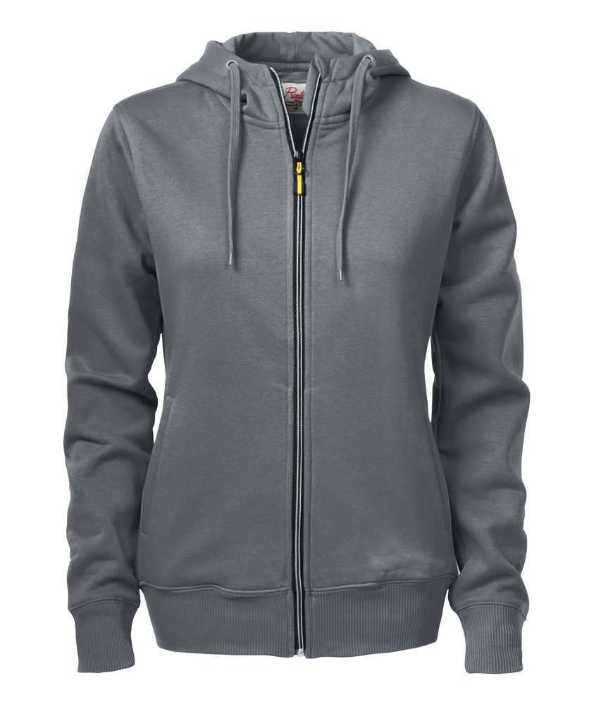 Sweatshirt met capuchon met tweekleurige ritssluiting vooraan en lichtgebogen steekzakken. De binnenkant van de capuchon is single jersey. De zippullers kunnen indien gewenst vervangen worden door één van de andere beschikbare kleuren. Oeko-Tex 100 gecertificeerd.