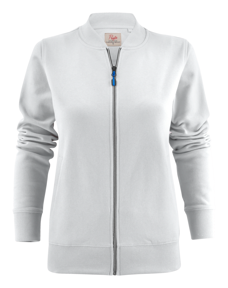 Sweatshirt met volledige, tweekleurige ritssluiting vooraan en lichtgebogen steekzakken. Het damesmodel heeft paspelzakken en een geribde opstaande kraag. De zippullers kunnen indien gewenst vervangen worden door één van de andere beschikbare kleuren. Oeko-Tex 100 gecertificeerd.