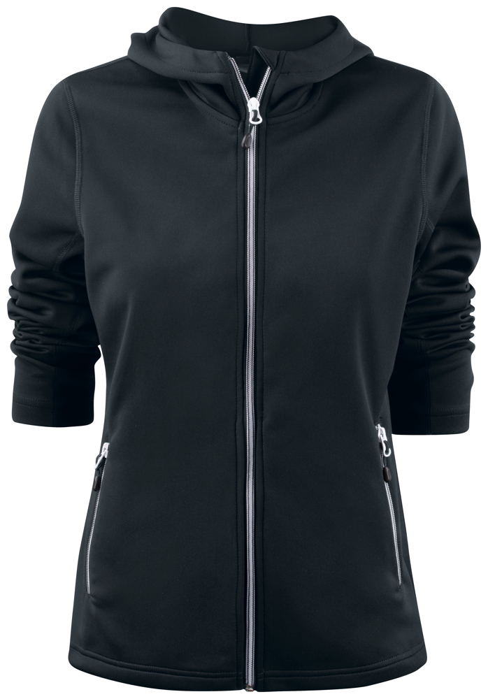 Sweatshirt met lange ritssluiting en capuchon in ringgesponnen stretchmateriaal. Contrasterende ritssluitingen, decoratieve flatlock naden en zijzakken met ritssluiting. SpunDyed. Oeko-Tex 100 gecertificeerd.