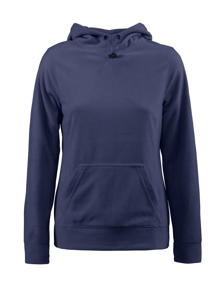 Hoody in microfleece met capuchon voor dames en heren. Kangoeroezak en elastisch trekkoord aan de capuchon.