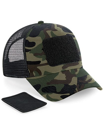 100% katoenen frontpaneel en klep, 100% polyester mesh achterpanelen | Afscheurbaar etiket | 5-panelen design | Voorgebogen klep | Verwisselbare Rip-Strip™-patch ontworpen voor decoratie (ca. 10 x 6,5 cm) | Drukknoopsluiting in retrostijl voor aanpassing van de maat