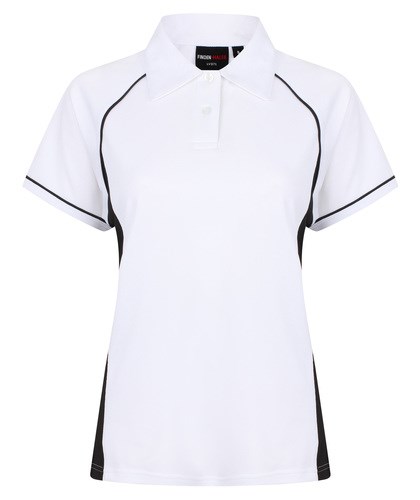 Kraag in zelfde stof, raglanmouwen | Knopenlijst met 2 knopen | CoolPlus® vezels en garens zorgen voor vochtafvoer, ademend vermogen en sneldrogende eigenschappen | Contrasterende biezen langs raglannaden en op voor- en achterkant