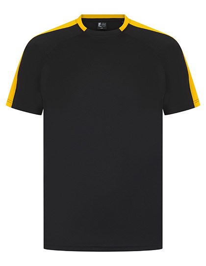 Single jersey | Uniseks | Contrasterende mouwpanelen in dezelfde stof | Sportieve pasvorm | Ademende finish zorgt voor vochtafvoer | Sneldrogend en ademend | Tweedelige kraag van dezelfde stof | Raglan schouder | Afscheurbaar etiket