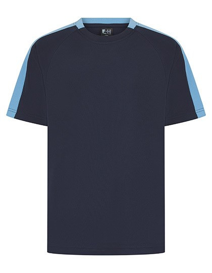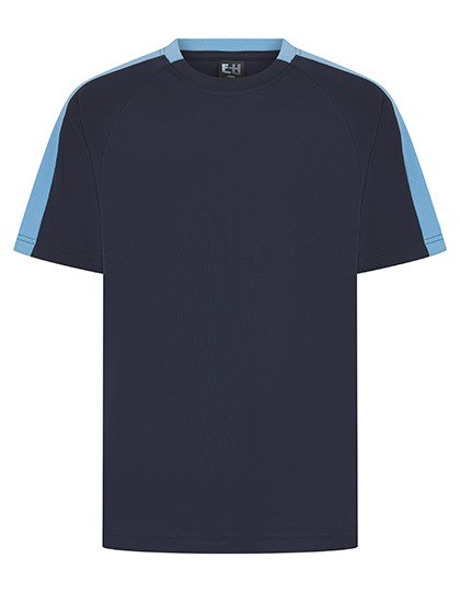 Single jersey | Uniseks | Contrasterende mouwpanelen in dezelfde stof | Sportieve pasvorm | Ademende finish zorgt voor vochtafvoer | Sneldrogend en ademend | Tweedelige kraag van dezelfde stof | Raglan schouder | Afscheurbaar etiket