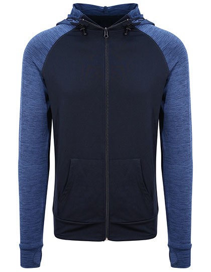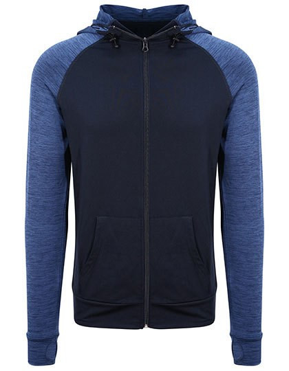 Slim fit | AWDis' eigen gemengde stof met elasthaan dat zorgt voor stretch, comfort en een goede pasvorm. | Vochtafvoerende, sneldrogende stof | Volledige rits aan de voorkant | Contrasterende gemêleerde mouwen | Kangoeroezakje | Afgeronde zoom aan de achterzijde | Verstelbare kap | Opening voor duimgat | Raglanmouwen | Afscheurbaar etiket