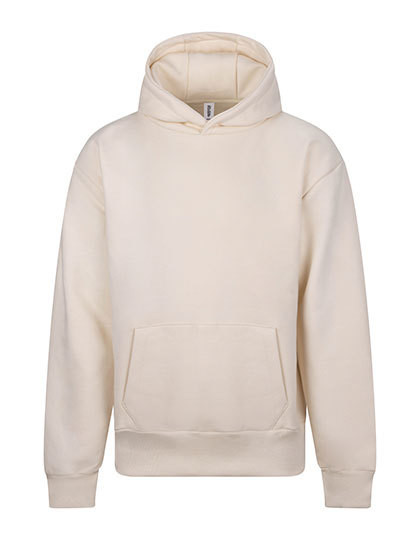 Geregenereerde katoen / Gerecycleerd polyester | Oversized snit | zwaargewicht | Dubbele stoffen kap met drie panelen | Kangoeroezak met binnenzak voor telefoon | Geen trekkoorden | Geribbelde manchetten en zoom | Geborstelde fleece aan de binnenzijde | 100% katoenen stof | Afscheurbaar etiket