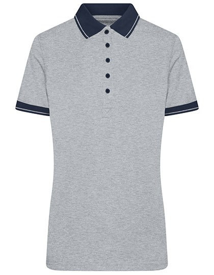 Gemêleerd poloshirt met modieuze details | Fijne single jersey | Sportieve snit | Gebreide polokraag en mouwbanden met contrasterende strepen | Licht getailleerd | 5 knopen
