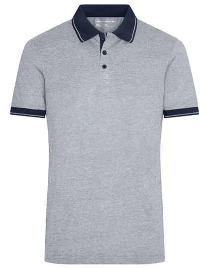 Gemêleerd poloshirt met modieuze details | Fijne single jersey | Sportieve snit | Gebreide polokraag en mouwbanden met contrasterende strepen | 3 knopen