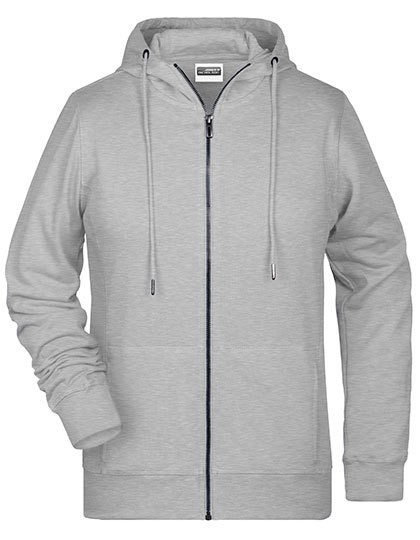 Sweatjack met kap en ritssluiting | Hoogwaardige French terry | 85% gekamd ringgesponnen biologisch katoen | Tweelaagse capuchon met trekkoord | Laterale deelnaden vooraan, kangoeroezak | Manchetten met elastaan | YKK-rits | Tear off!®-label | Licht getailleerd