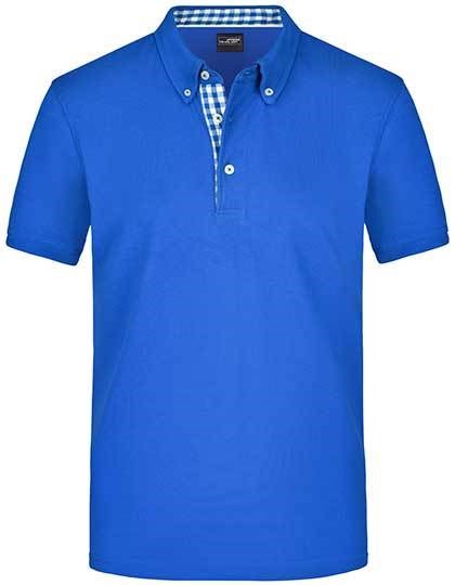 Button-down poloshirt met modieus inzetstuk | Fijne klassieke piqué-stof | Gekamde ringgesponnen katoen | Kant-en-klare kraag met knopen | Trimmen op kraagstand, aan de binnenkant van de knoopsluiting en zijsplitten | 3 knopen in contrasterende kleur | Halve maan in bijpassende kleur