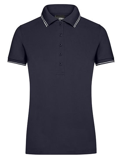 Polo in elastische piqué stof | Gekamde ringgesponnen katoen | Gebreide polokraag en mouwbanden met contrasterende strepen | Contrasterende zijsplitten | 5 knopen | Getailleerde pasvorm
