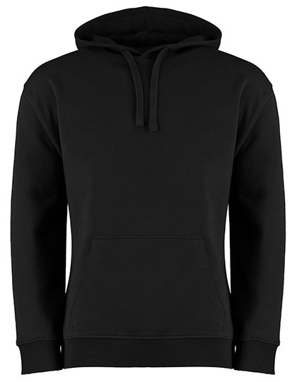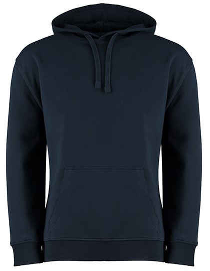 Middelzware hoodie | Geborstelde trui | Dubbeldraads stiksel op de ribben en armsgaten | Over het hoofd hoodie | Capuchon in dezelfde kleur als jersey | Jersey binding aan de nek | Getapete schouder | Dubbelgelaagde manchet en boord van volledige stof van dezelfde stof | Plat kanten trekkoord door de capuchon | Centrale kangoeroezak met dubbel stiksel | Kustom Kit® scheurlabel