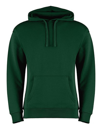 Middelzware hoodie | Geborstelde trui | Dubbeldraads stiksel op de ribben en armsgaten | Over het hoofd hoodie | Capuchon in dezelfde kleur als jersey | Jersey binding aan de nek | Getapete schouder | Dubbelgelaagde manchet en boord van volledige stof van dezelfde stof | Plat kanten trekkoord door de capuchon | Centrale kangoeroezak met dubbel stiksel | Kustom Kit® scheurlabel