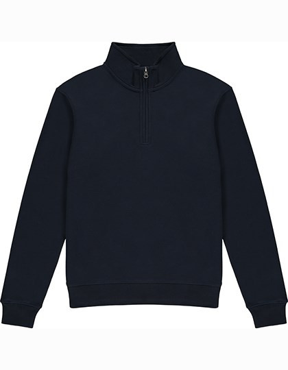 Herensweatshirt met 1/4-rits vooraan en cadet-kraag | Normale pasvorm | Effen gekleurde geweven band aan de binnenkant van de hals en de achterkant van de rits | Getapete schouders | Full needle rib dubbel gelaagde manchet en dubbelgestikte boord | Dubbellaagse kraag | Dubbel gestikte schouders en armsgaten | Zirkoonkleurige metalen ritssluiting en trekker | Afscheurbaar label | Bedekte rits voor verbeterde bedrukbaarheid | Full needle geribde boord en manchet voor modelherstel