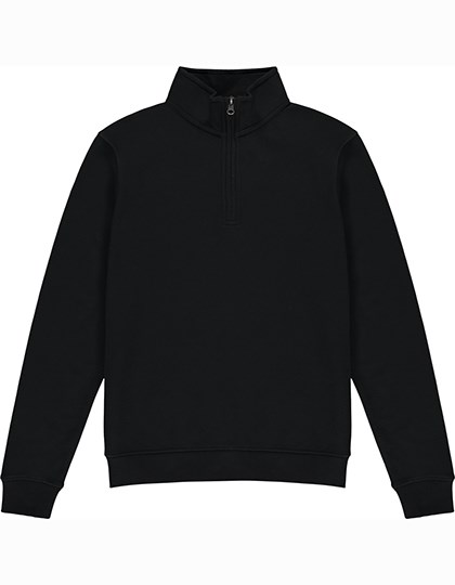 Herensweatshirt met 1/4-rits vooraan en cadet-kraag | Normale pasvorm | Effen gekleurde geweven band aan de binnenkant van de hals en de achterkant van de rits | Getapete schouders | Full needle rib dubbel gelaagde manchet en dubbelgestikte boord | Dubbellaagse kraag | Dubbel gestikte schouders en armsgaten | Zirkoonkleurige metalen ritssluiting en trekker | Afscheurbaar label | Bedekte rits voor verbeterde bedrukbaarheid | Full needle geribde boord en manchet voor modelherstel