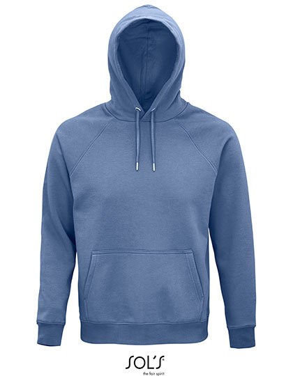 Fleece 280 | 80% biologisch katoen / 20% gerecycleerd polyester | 3 draden | Binnenzijde opgeruwd | Buitenkant: 100% katoen, ribben: 97% biologisch katoen / 3% elastaan | Biohoodie | Zijnaad | Gekruiste hals | Kangoeroezakje | Raglanmouwen | Halve-maanvorm in hals | Katoenen nektape | 2x2 geribde manchetten en zoom | Zilveren oogjes en stoppers | Rond ton-sur-ton trekkoord | Geen etiket