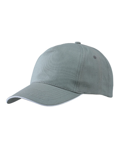 5-paneel promo sandwichcap in contrasterende kleur | Klittenbandsluiting | 4 geborduurde ventilatiegaten | 6 decoratieve naden op de piek | Licht gelamineerde frontpanelen | Katoenen zweetband