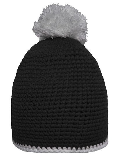 Gehaakte muts met contrasterend rand en pompon | handgemaakt | Comfortabel dankzij een...meer