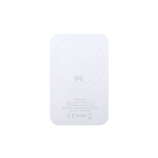 Externe hulpbatterij met hoge capaciteit, draadloze oplaadtechnologie -5.000 mAh-. Compact ontwerp met magnetische bevestiging waardoor het apparaat tijdens het opladen kan worden gebruikt. Type-C stroomingang en USB uitgangsaansluiting, met Type-C oplaadkabel inbegrepen. Aan/uit-knop, LED's voor oplaadstatus en breed merkoppervlak. Gepresenteerd in een aantrekkelijke ontwerpdoos, met gebruiksaanwijzing in het Engels en Spaans. Inclusief zelfklevende ring, geschikt voor alle apparaten met Magsafe- en Qi-technologie.De getoonde capaciteiten van al onze externe hulpbatterijen zijn echt, ze bevatten allemaal niet-gerecyclede, klasse A batterijen, met een levensduur van ten minste 500 laadcycli, en voldoen aan de CE-regelgeving. Bovendien zijn ze vervaardigd volgens RoHS-normen, en voldoen ze aan de volgende veiligheidseisen: Overlaadbeveiligingssysteem voor de powerbank. Volledig ontladingsbeveiligingssysteem, dat de duurzaamheid van de powerbank verhoogt. Blokkeersysteem om kortsluiting te voorkomen. Constant oplaadoverdrachtsysteem, in overeenstemming met de capaciteit van het doelapparaat.