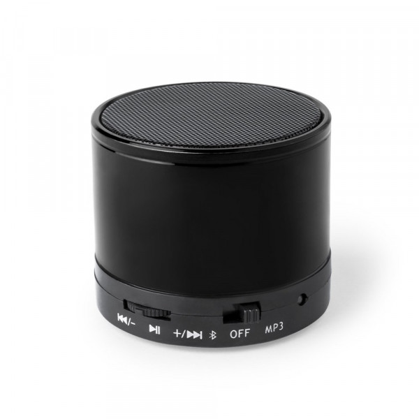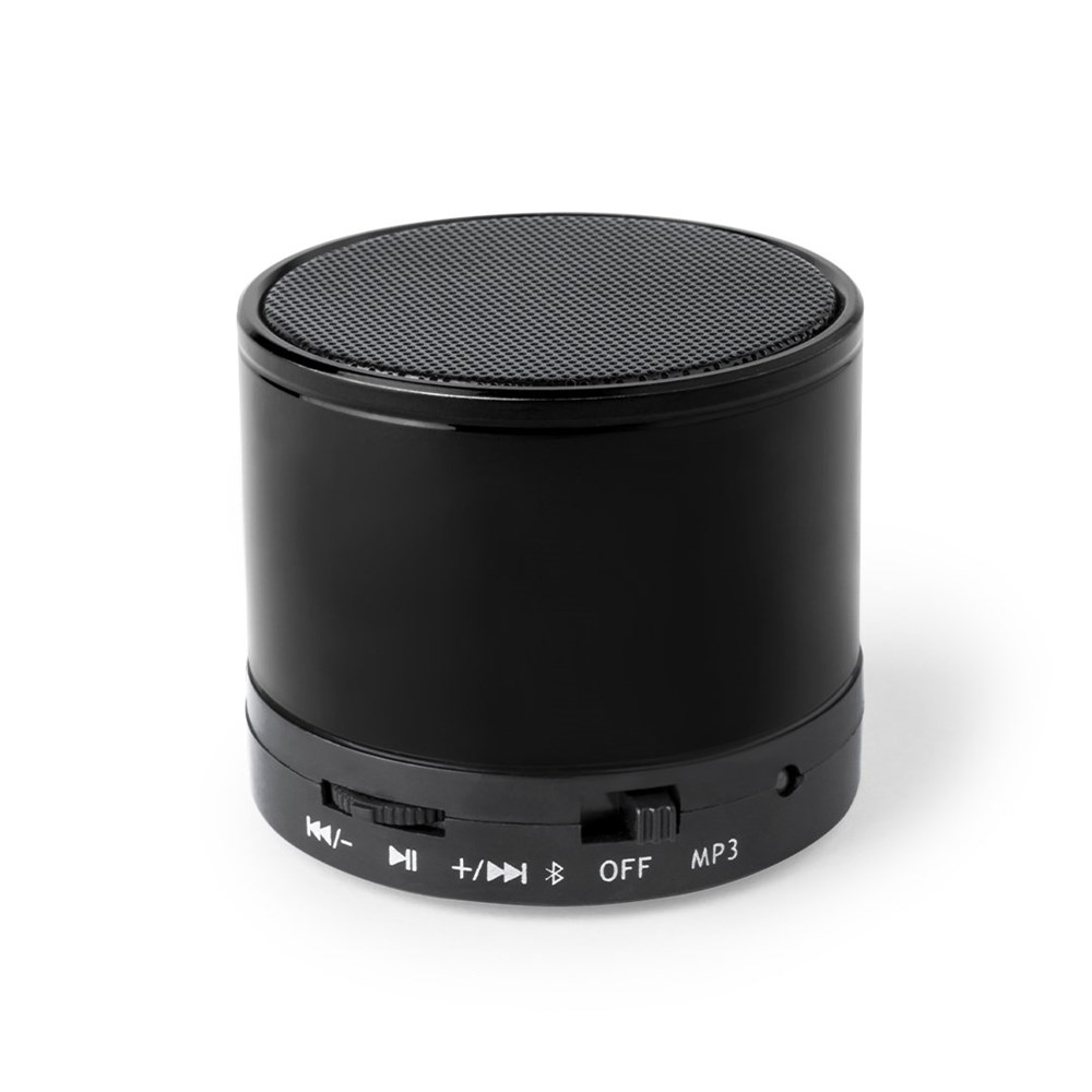 Compacte luidspreker met Bluetooth® 5.0-verbinding EN 3 W vermogen. Handsfree-functie, sleuf voor mini-SD-kaarten met een capaciteit tot 64 GB, FM-radiofunctie en Aux-in via 3,5 mm jack-aansluiting. Met antislip rubberen pads op de basis. Compatibel met iOS en Android, inclusief oplaadkabel en 3,5mm jack AUX-kabel. Geleverd in een aantrekkelijke designdoos, met gebruiksaanwijzing in het Engels en Spaans. Verkrijgbaar in een groot aantal metallic kleuren.