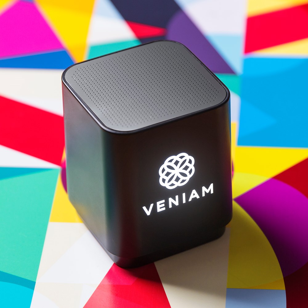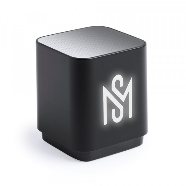 Bluetooth® speaker, met LED licht en speciaal ontworpen voor laser print waardoor het logo oplicht. 3W power en hand free function. Oplaadbaar via een USB kabel (bijgeleverd). Verpakt in een mooie geschenkdoos.