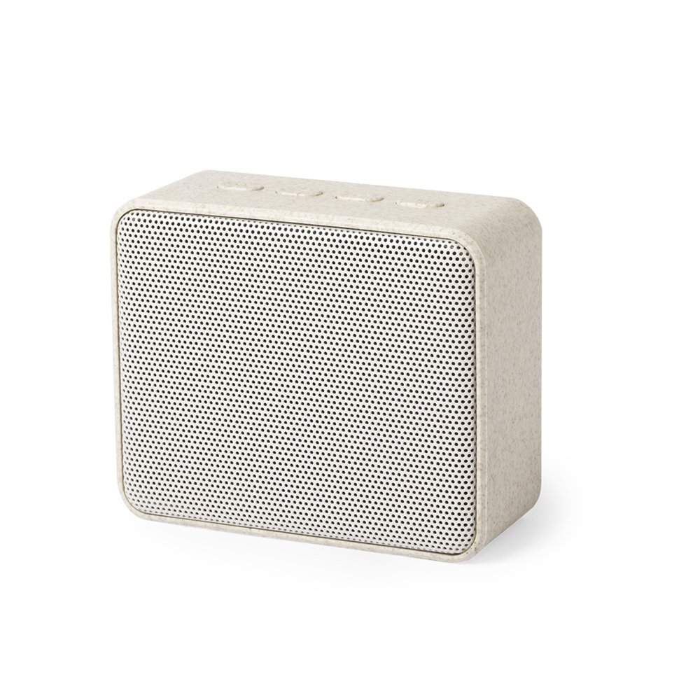 Natuurlijn, Bluetooth® 5.0 docking speaker. Uitgevoerd in tarwestro, om het gebruik van natuurlijke grondstoffen te stimuleren en de uitstoot van vervuilende stoffen te verminderen, Met 3W geluidsvermogen, met USB-speler. Compatibel met iOS en Android, inclusief een micro-USB-oplaadkabel en wordt geleverd in een individuele eco-ontwerpset. Met anti-slip rubbers aan de basis.